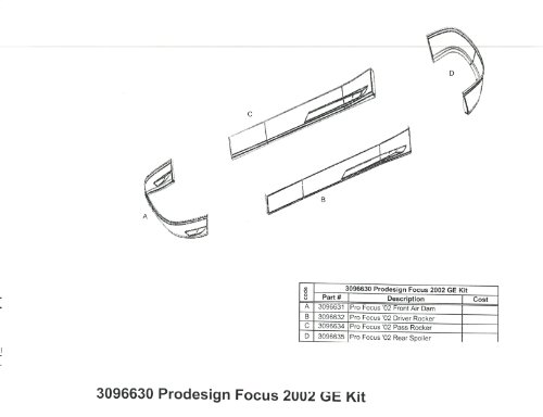 Parts Include: 3096631 - Front Air Dam 3096631 - Driver Rocker 3096634 - Passenger Rocker 3096634 - Rear Spoiler **Must ship to a Commercial address or an $85 Residential Delivery Charge will apply**Features • If you are interested in buying 2002 Ford Focus ProDesign Kit You can try to find full information and product details. • Reading reviews will give you a complete understanding of the pros and cons for the product. • If you try to find comparable items, and sometimes it helps to get the selection. • You can try to find arguments. • See the details for each product offerings and information. • You can try to find product features. • In general, I know the Internet in 2002 Ford Focus ProDesign Kit, or other material purchased the customer shops and stores, shipping, gift ideas, city deals, sales, coupons, online, new, holiday and reviews, cheap and low-cost interest daily deals, deal, 2002 Ford Focus ProDesign Kit special offers, Best deals, discount coupons, and more hot deals, great offers, last minute deals and the best buy various products including ...Additional Information |