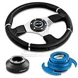 NRG-SRK-105H+008R+650NB, NRG Innovations 13.78" 350mm Black Leather Racing Steering Wheel Combo with 6 Hole Short Hub Adapter with Gen 3.0 with Handle New Blue Quick Release Kit SRK-105H
