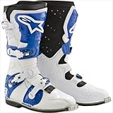 Alpinestars Tech-8 Light Boots (11) (WHITE/BLUE)Alpinestars exclusive fully replaceable, high grip, dual-density rubber outsole. Class leading protection and performance Contoured shin and calf plate is injected with high modulus TPU for superior impact resistance and is perforated to increase ventilation. Extended, internal protection plates are also made of injected TPU and guard the ankle and lower foot, as well as the toe-box area. Contoured tempered steel shank is over injected inside the mid-sole assembly for rider safety and support. Stamped steel toe and heel guard. Precision and comfort Dual sliding blade mechanisms on the front and rear of the boot offer progressive resistance to fore and aft movement for enhanced comfort and control straight out of the box. Low profile toe for improved control and sensitiveness in the shift area. New ergonomic ankle construction means no break-in is required for comfortable riding. Full-length, sculpted rubber panel on the inner side of the boot gives superb grip against the bike and is insulated with aluminum foil for improved heat resistance. Instep and Achilles flex zones for superior comfort, control and support. Revised closure system features 4 new self-aligning, quick release aluminum buckles with memory adjustment for precise closure. Top and bottom reverse closure design provides superior impact security and improved fit. Replaceable kick starter protection insert located on the right boot. Soft, TPU gaiter provides an effective seal around the top of the boot, preventing excessive water and dirt entry. Breathable 3D tech mesh lining reduces heat buildup and improves comfort. The TECH 8 Light boot is CE certified.