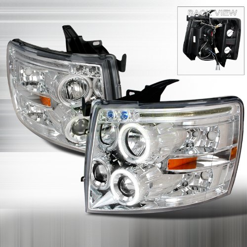 2007-2010 Chevy Silverado CCFL Halo LED Projector Headlights Chrome